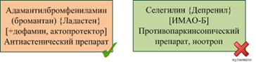 a. Селегилин {Депреніл, Юмекс} [інгібітор моноаміноксидази типу Б] Не настільки сильний протипаркінсонічний препарат. Зустрічаються згадки про його використання в якості "ноотропи", правда, в першу чергу, на людях старше 40, і при проведенні аналогій з мишками, яким він продовжує життя. Має багато протипоказань, лікарських взаємодій, незрозуміло продається чи в аптеках і скільки коштує (в інтернеті присутній коробками по сто таблеток за суми в 1500-3000 рублів), так що краще не будемо його чіпати.