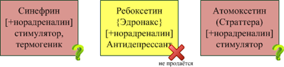 b. Ребоксетін {Едронакс} [антидепресант класу ІОЗН] в Росії не пройшов реєстрацію і не продається, так що опустимо.