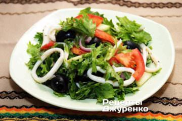 Салат з кальмарів з зеленню і овочами