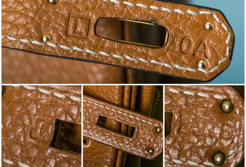 Відкрийте замок, щоб побачити так звану "сліпу друк". Кожна сумка Hermès робиться виключно вручну, тому на неї ставиться печатка, яка ідентифікує рік, в якому вона була проведена. На жаль, іноді такий штамп можна знайти і на підробці. Хоча, він точно буде менш якісним.