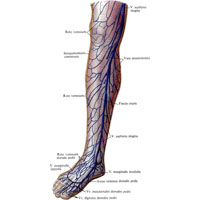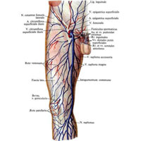 Поверхневі вени ніжнейконечності, vv. superficiales membri inferioris, анастомозируют з глибокими венами нижньої кінцівки, vv. profundae membri inferioris, найбільші з них містять клапани.